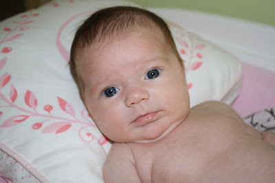You were VERY sleepy for the first two weeks of your life but have "woken up" some. You are still such a good sleeper and give us 4, 5, sometimes even 6 hours of straight sleep at night. After the first few days we brought you home, we moved you to your crib at night and you seem to like it there. You didn't like your bath at first but are starting to enjoy it more.